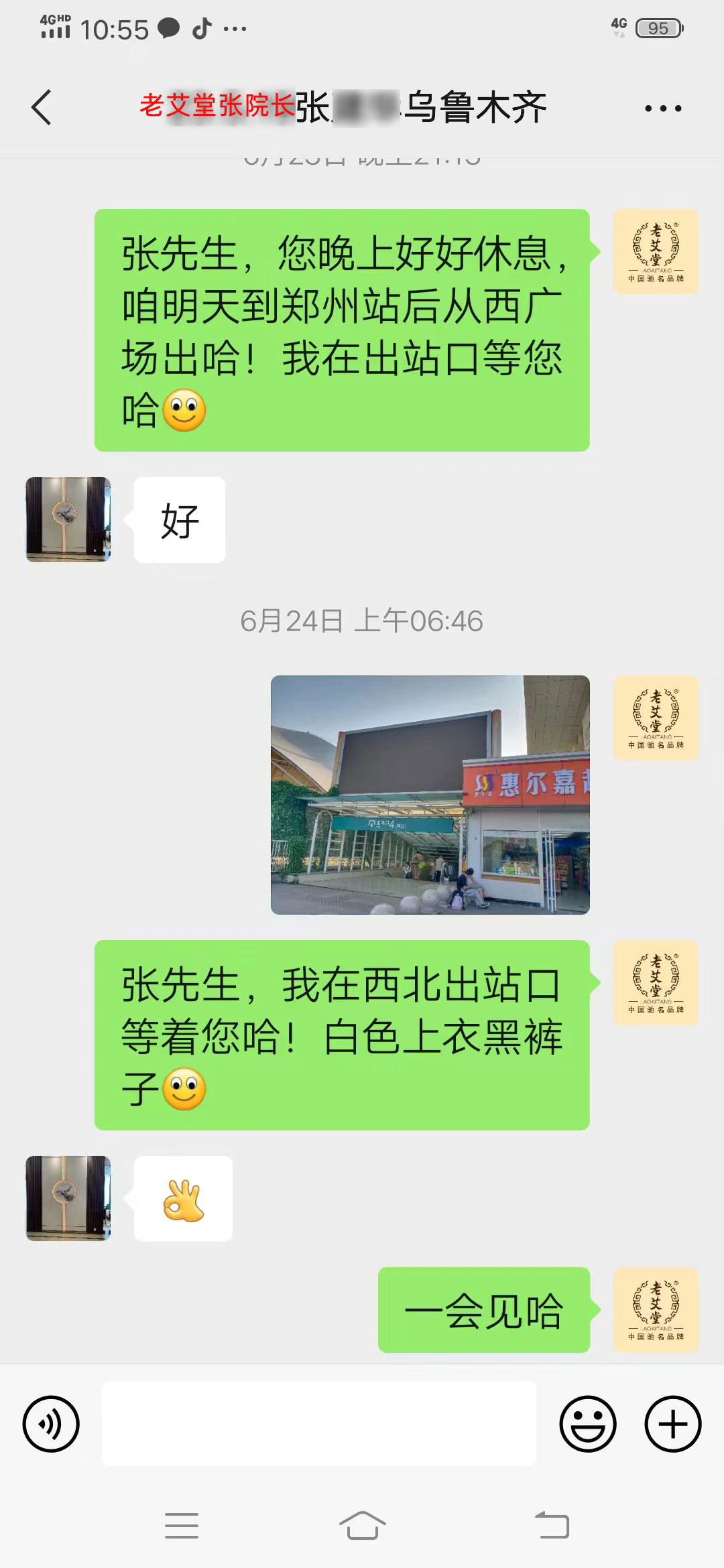 一路上看到商務(wù)老師不時(shí)發(fā)來(lái)的關(guān)懷,抵達(dá)鄭州,看到吳老師在出站口接站的身影時(shí),走進(jìn)老艾堂總部時(shí),張?jiān)洪L(zhǎng)感覺這一切付出都是值得的!