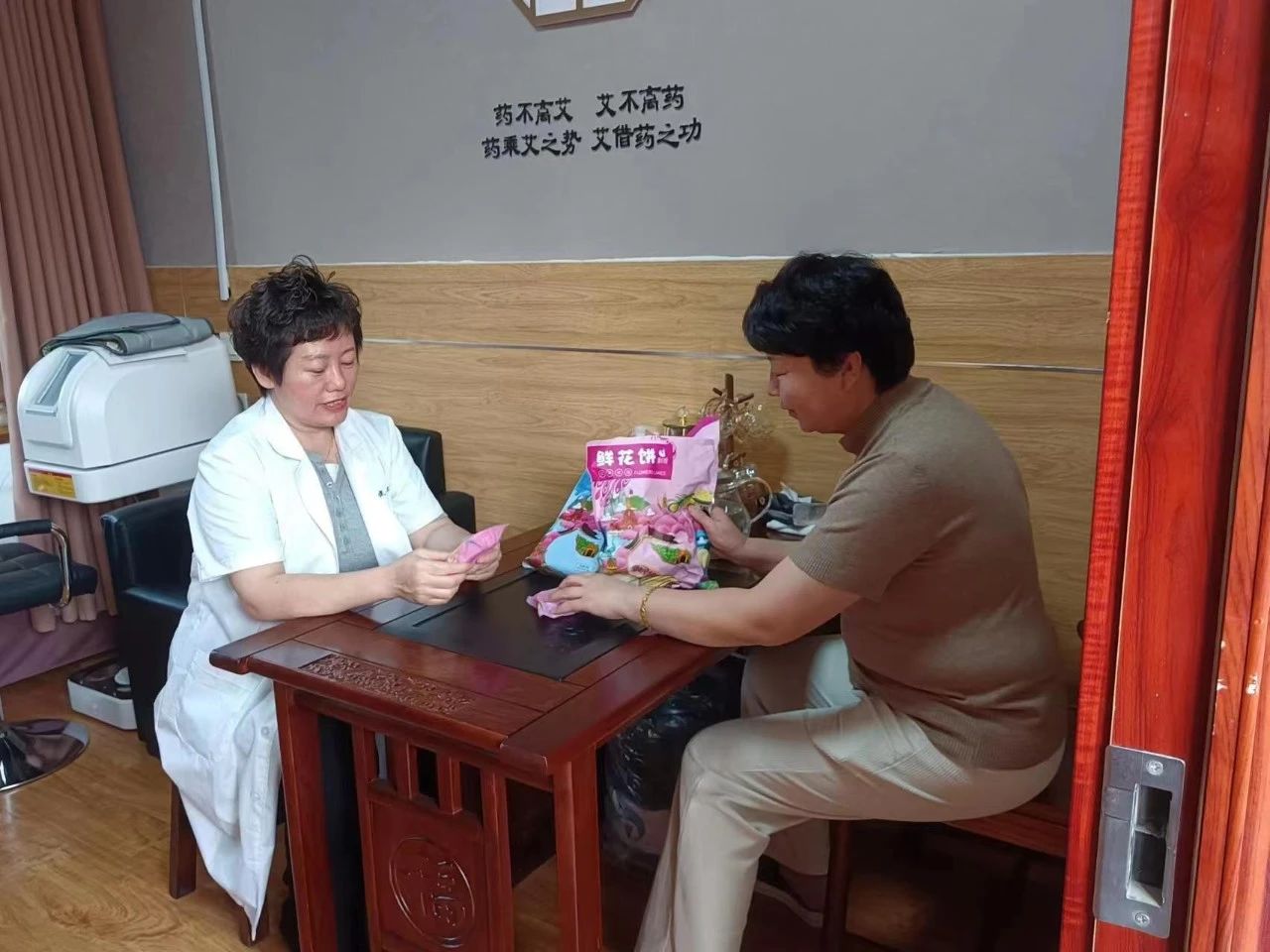 世間很多美好的事物,并非觸手可及,經(jīng)過時(shí)間的醞釀和打磨的結(jié)果才顯得更加珍貴。當(dāng)顧客走在路上看到西瓜不錯(cuò),當(dāng)即買下親自送來,返回路上巧遇桃子正好,趕忙買下不辭辛勞再跑一趟;中午飯點(diǎn)未到,顧客早早發(fā)來消息聲稱已帶著飯?jiān)谮s來路上……這一個(gè)個(gè)平凡日常涌動(dòng)的溫暖,或許便是王院長新店開張、單手持艾的底氣!